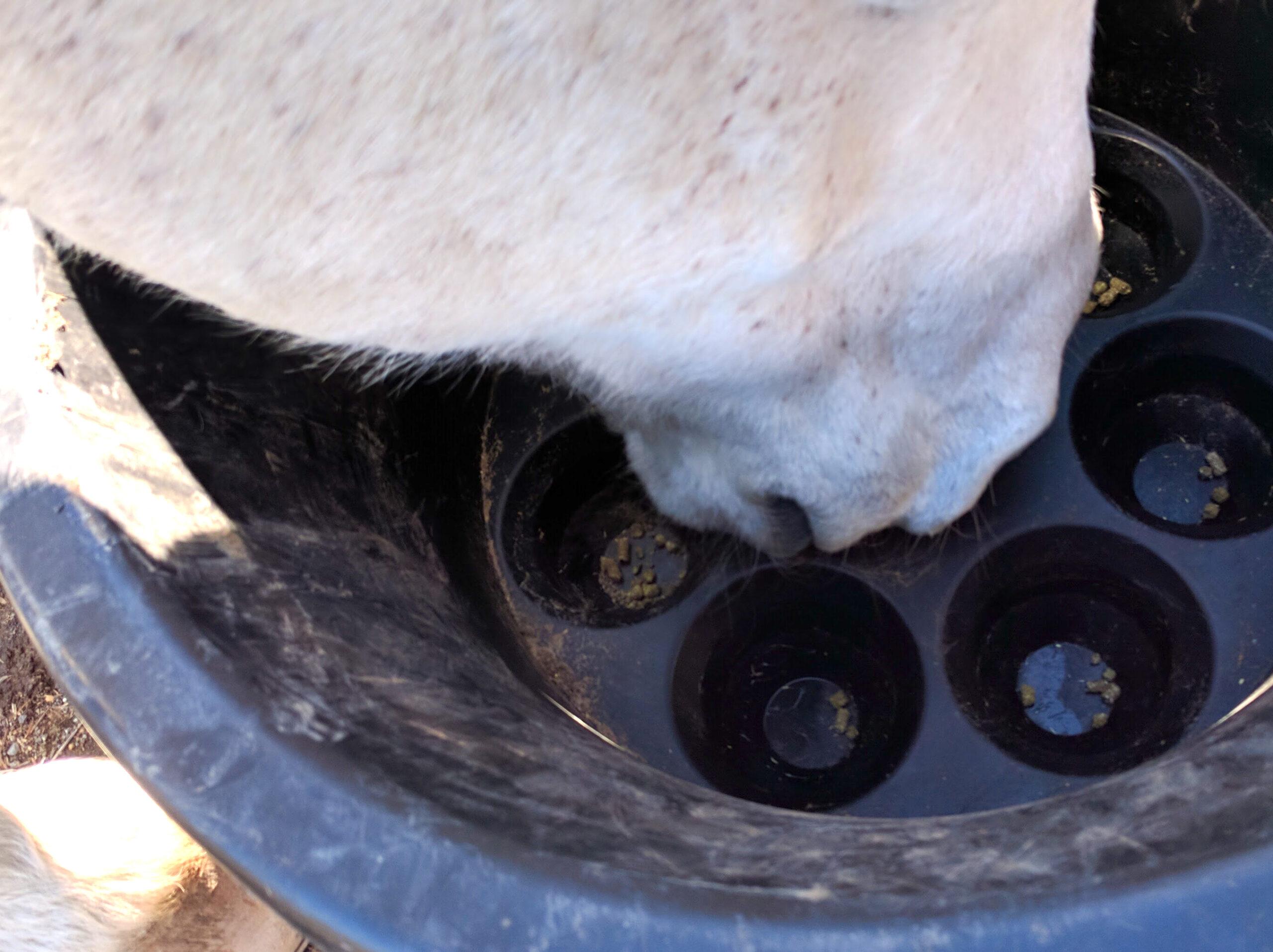 Choke is more likely when horses don’t use slow feeders, and concentrated feeds are not soaked in water.